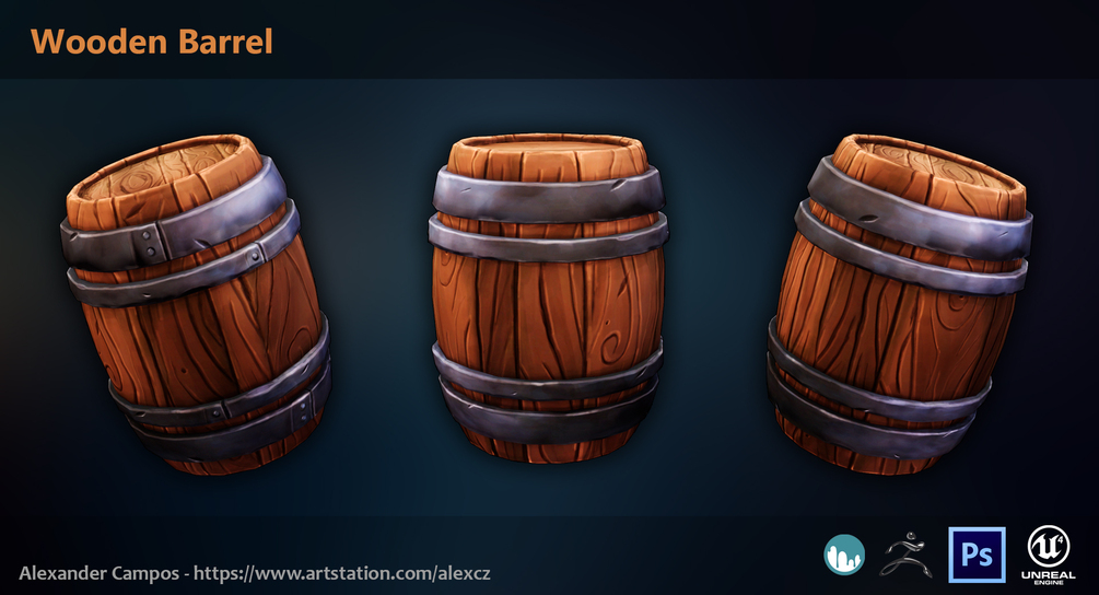 This stylized barrel prop can be fit in a fantasy world and it was made by the hand-painted technique. Ready for VR/AR, Unity, and Unreal Engine.