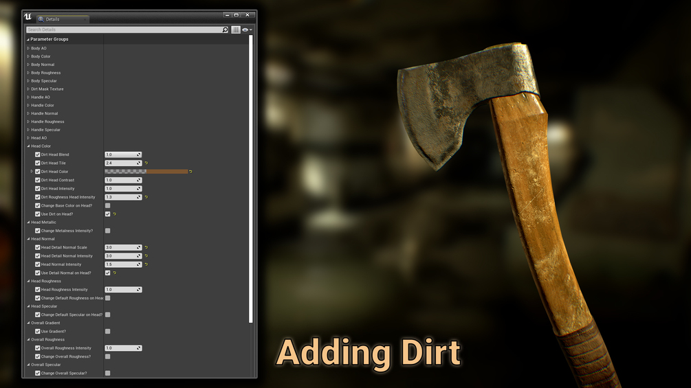 Adding Dirt masks to meshes: https://youtu.be/_XmZEWKxTNw